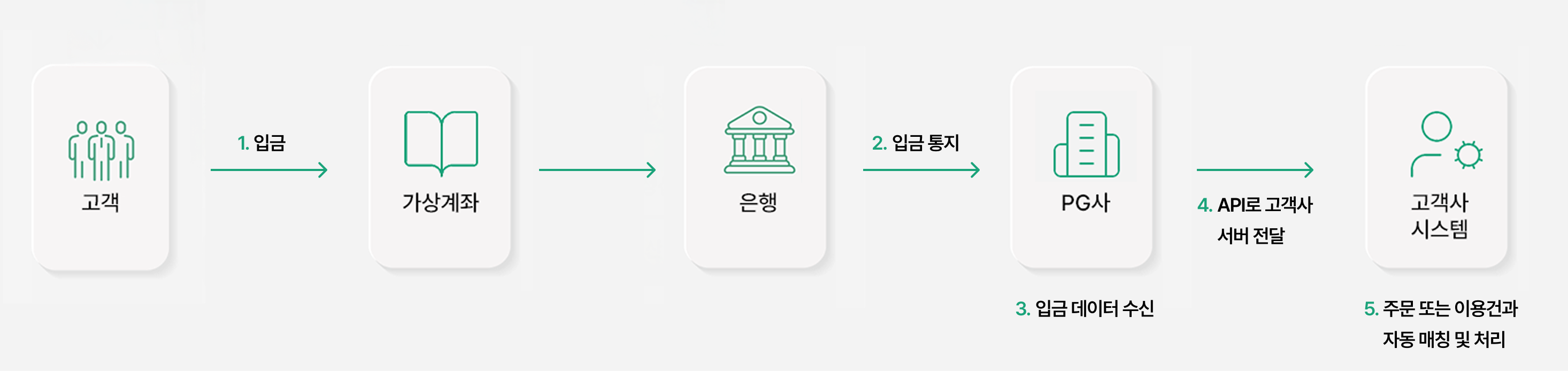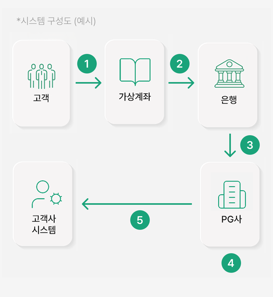 • 고객별 1:1 계좌 또는 일회성 임시계좌 등 다양한 형태의 계좌를 발급 가능합니다.